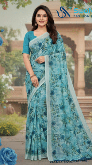 Lavender Meadow Digital Print Linen Saree