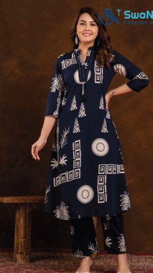 Fuchsia Pink Geometric Printed Kurta Set
