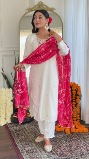 The Ivory & Fuchsia Contrast Kurta Set