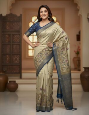 Swanari Fashion Sage Green & Navy Blue Silk Saree