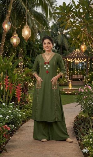 Select options This product has multiple variants. The options may be chosen on the product pageFestive Mirror-Work A-Line Kurta Set with Embroidered Pockets & Wide-Leg Palazzos