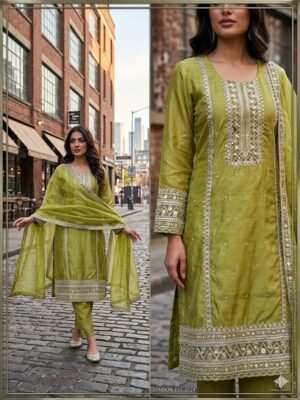 Elevate your festive presence with our Designer Organza Silk Salwar Suit Set, a masterclass in ethereal style and vivid artistry. This ensemble is meticulously crafted from premium Organza Silk, a fabric renowned for its lightweight feel, subtle translucent glow, and structured drape. Designed for high-end celebrations, this set perfectly bridges the gap between traditional heritage…