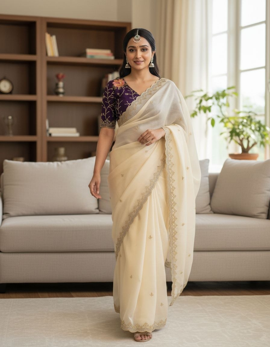 - Blouse Work:Â Â Intricate Heavy Work (Embroidery/Thread/Sequence)