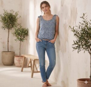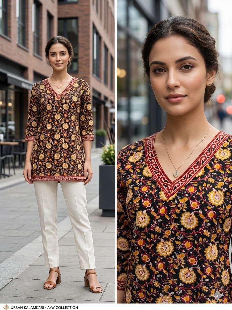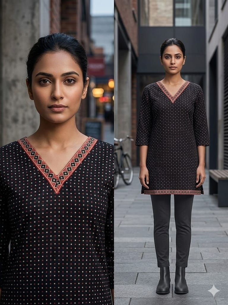 Complementing the kurta are a pair of matching tapered trousers, finished with coordinated embroidery at the ankles for a cohesive, “suit-style” finish. Whether you are leading a presentation at the office, attending a daytime social event, or enjoying a festive brunch, this set provides an effortless transition from professional to social settings. Its clean lines and subtle embellishments make it a versatile staple for the woman who appreciates understated elegance.