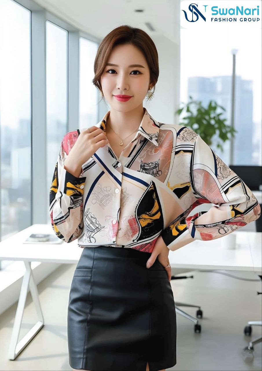 Styling: Styled tucked into a fitted skirt to create a defined and professional silhouette.