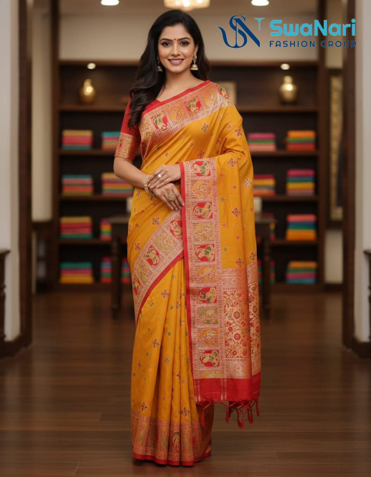 | Saree Material: | Art Silk / Silk Blend (Heavy Woven Zari) |