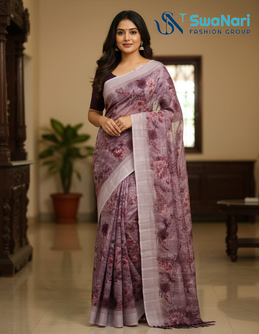 Elevate your collection with the Lavender Meadow Linen Saree, a perfect convergence of traditional textile artistry and contemporary sophistication. Crafted from premium, breathable Linen fabric, this saree offers an elegant drape and exceptional comfort for prolonged wear.