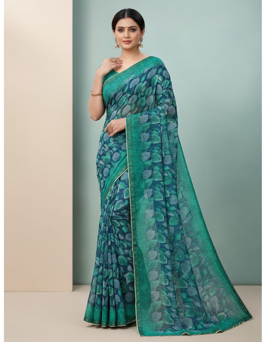| Saree Pattern: | Abstract Leaf/Botanical Print with Solid Pallu/Border |