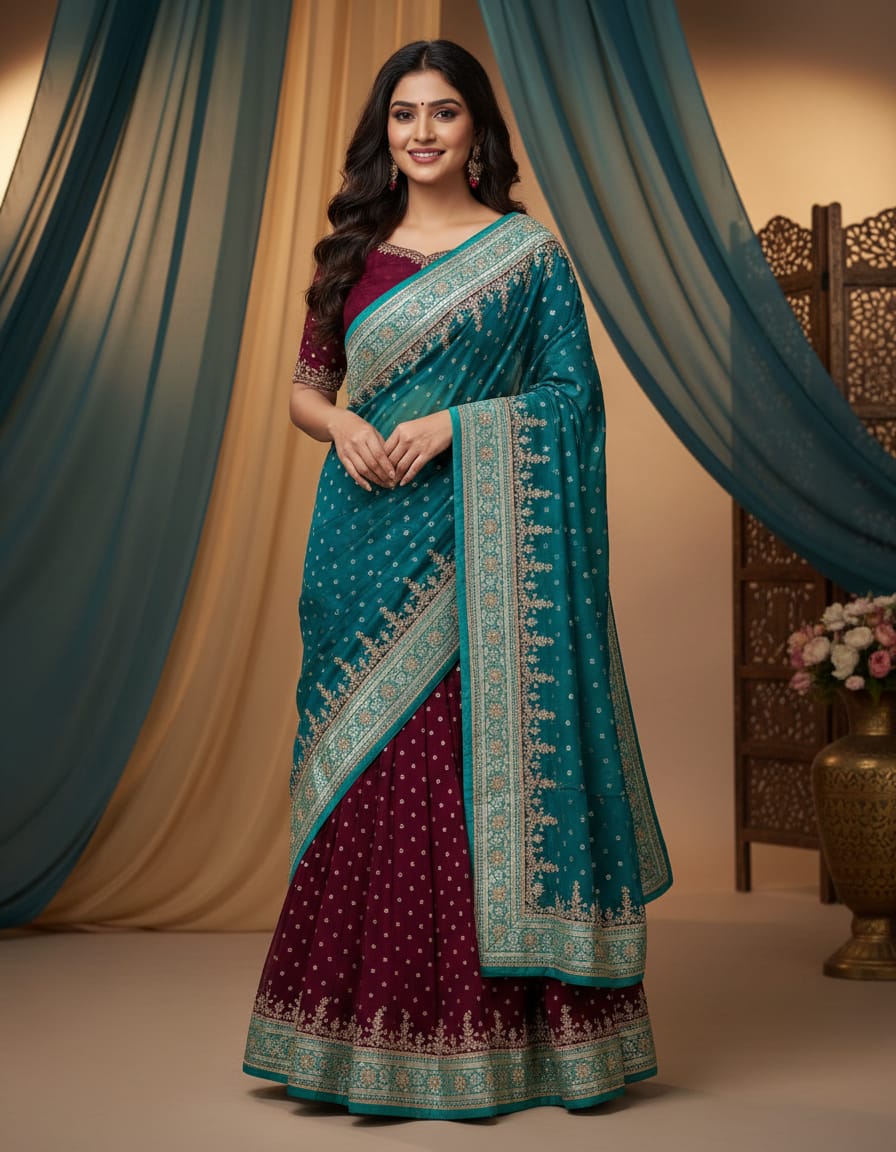 Disclaimer: The quality of the Zari work suggests a machine-assisted weave, making it accessible while maintaining a classic look.