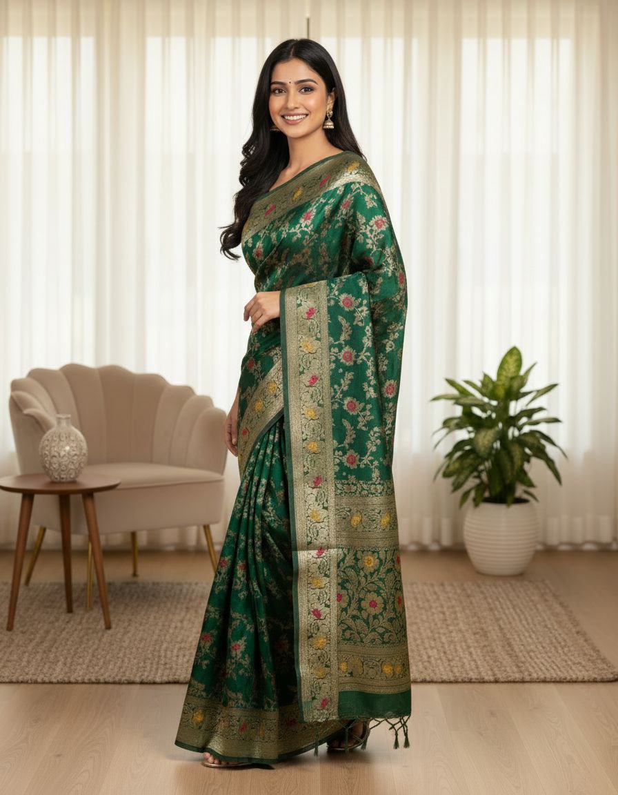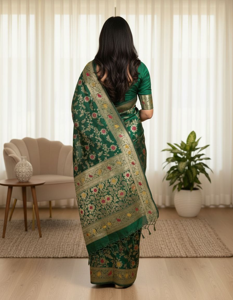 Emerald Elegance: Handwoven Banarasi Silk Saree