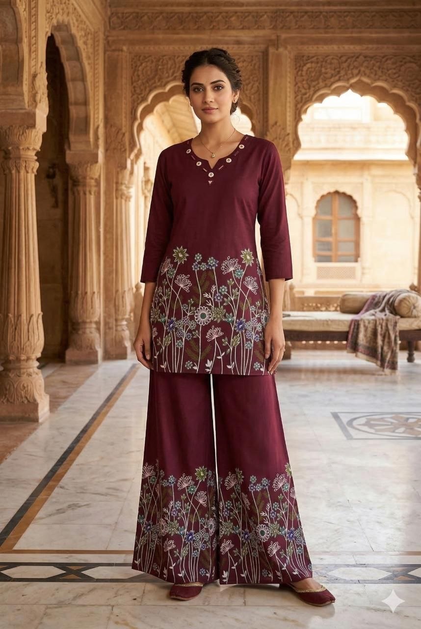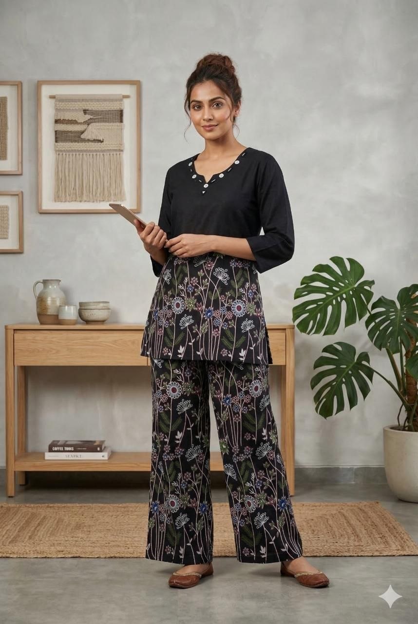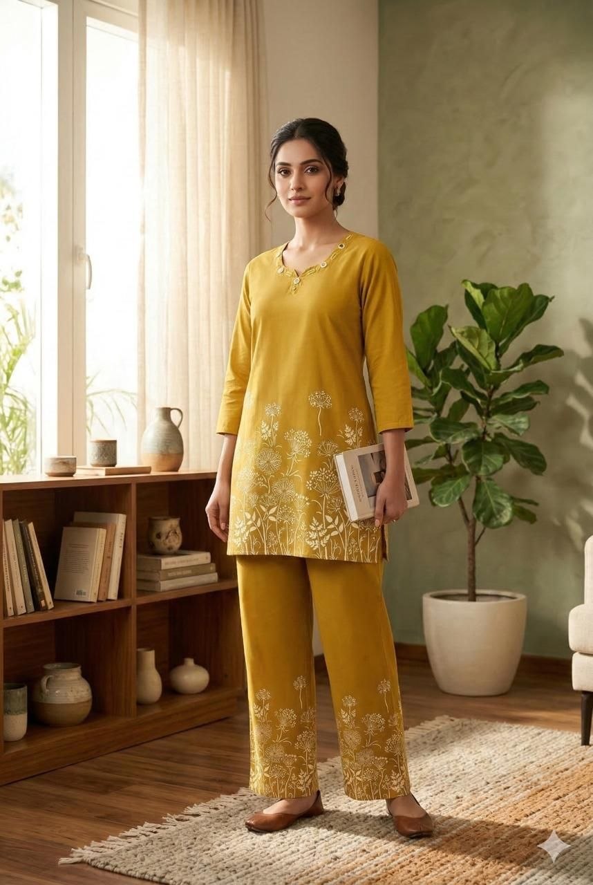 Reconnect with the soul of Indian textile artistry with our Imperial Mandala Collection. This meticulously crafted two-piece set is a celebration of traditional hand-block aesthetics, featuring an intricate symphony of geometric and kaleidoscopic mandala motifs. Available in a curated palette of deep, earthy tones—including Regal Indigo, Crimson Rust, Forest Moss, and Midnight Slate—this ensemble is designed to offer a grounded yet high-fashion look for the modern professional.
