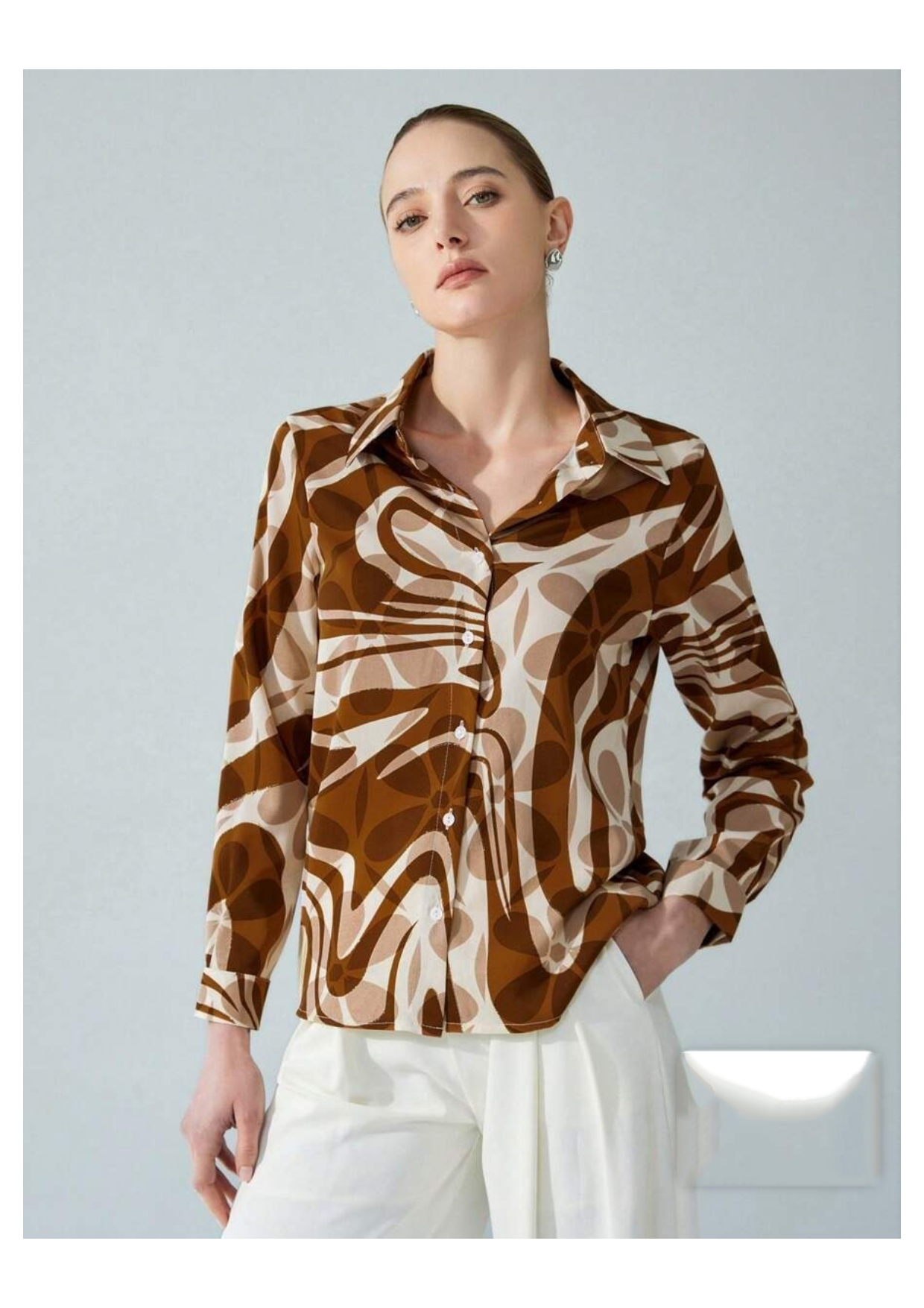 This diverse collection offers a sophisticated blend of contemporary urban wear and high-energy resort styles. The curated shirting features bold, artistic prints that cater to the modern professional. Highlights include a sharp black-and-cream top with a geometric architectural motif and a tailored split V-neckline, alongside a retro-inspired brown and tan abstract swirl button-down. For a more relaxed aesthetic, the collection offers a sage green and white oversized checkerboard print shirt, perfect for pairing with structured trousers.