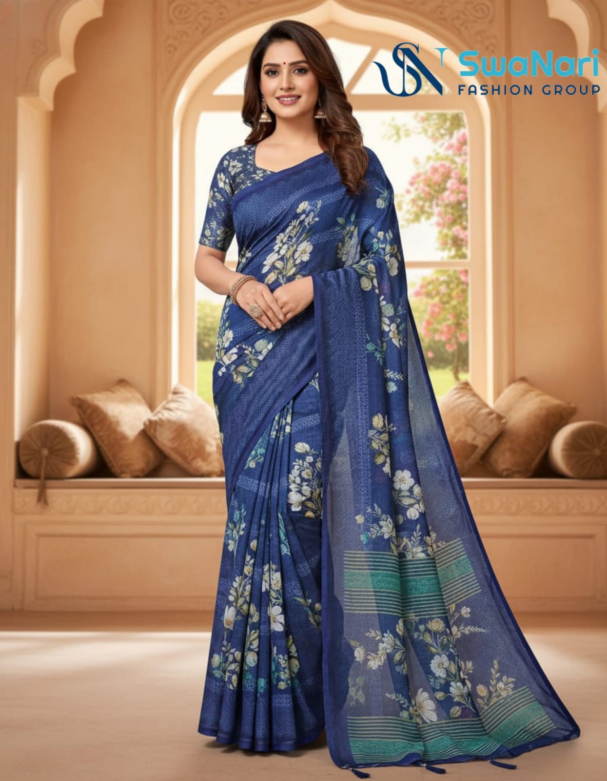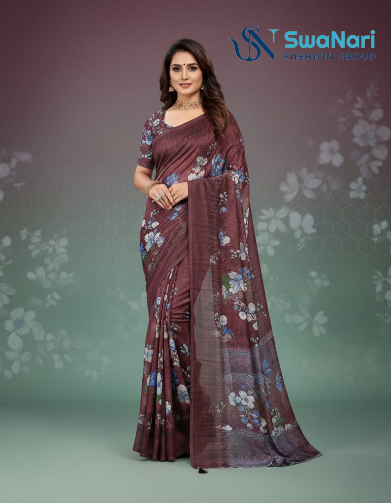 | Saree Pattern: | Digital Floral Print with Subtle Stripes |