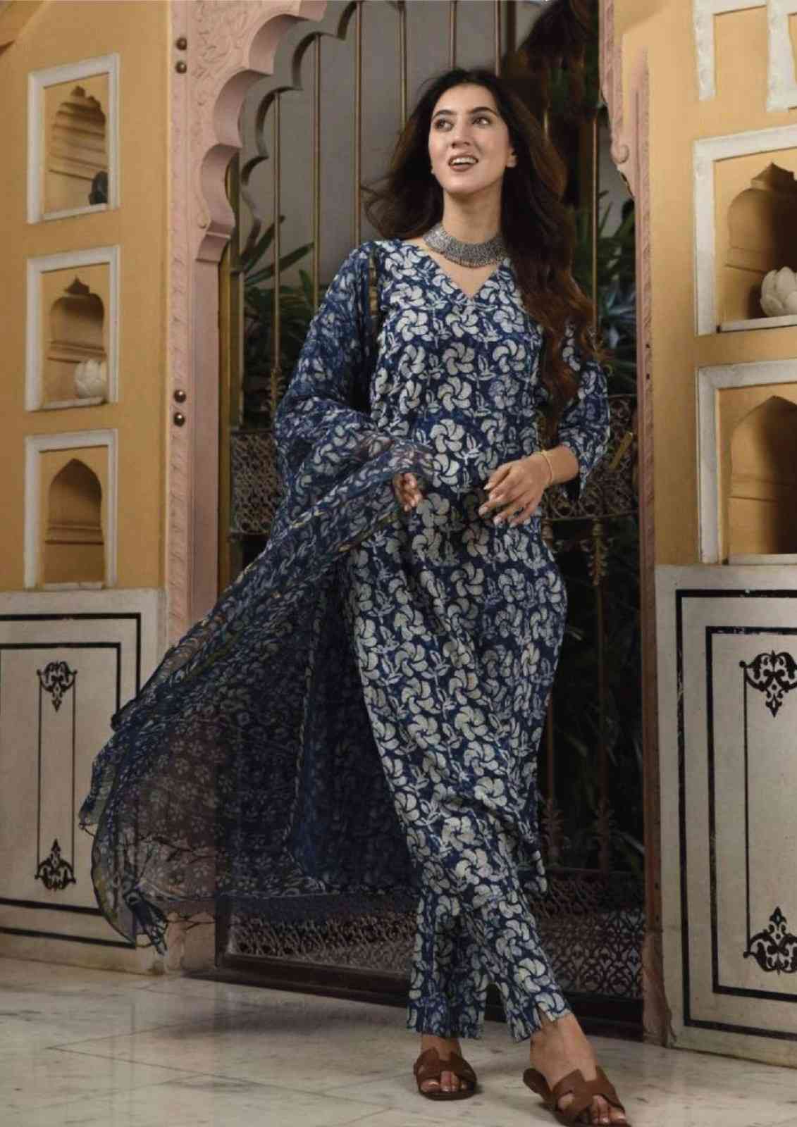 | Set Components | Printed Kurta, Matching Trousers, and Flowing Dupatta |