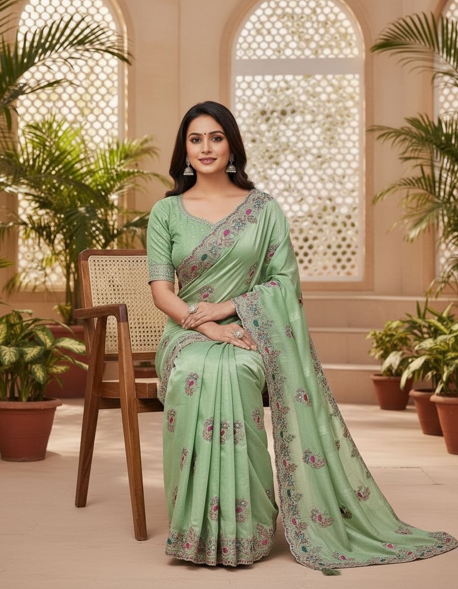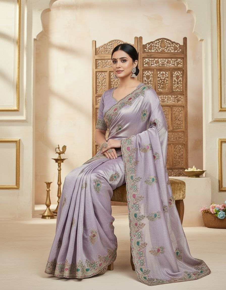 Opulent Shimmer Silk Saree with Intricate Multi-Tone Embroidery