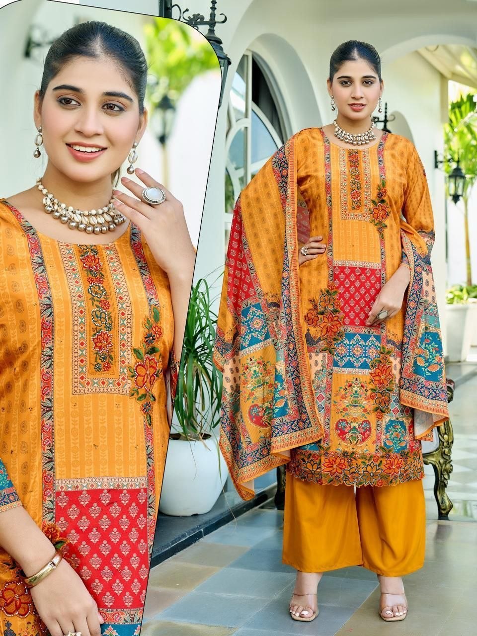 | Sleeve Detail | 3/4th Sleeves with Rich Embroidered Borders |