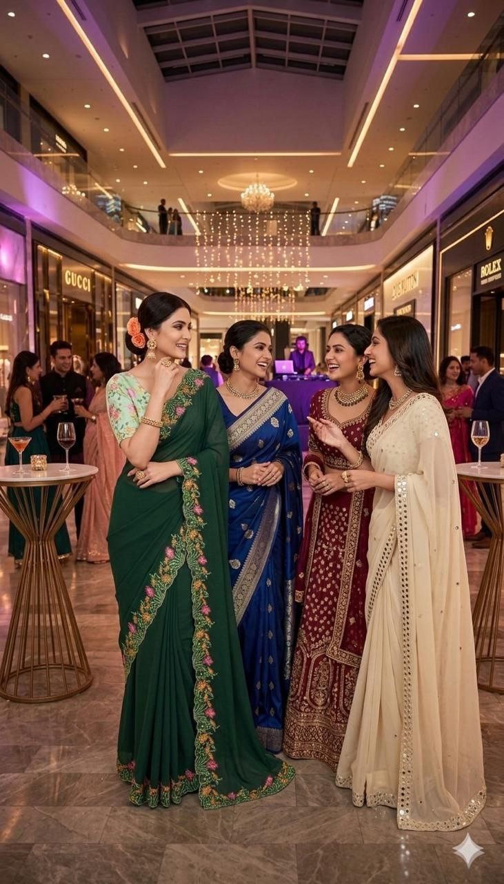 Complementing the rich green base is a pista-green floral blouse that adds a breath of fresh air to the overall look. The blouse features delicate botanical prints, bridging the gap between traditional craftsmanship and modern color blocking. Whether you are attending a cocktail party, a festive celebration, or a wedding reception, this unique color combination ensures you stand out with effortless sophistication. It’s not just a garment; it’s a celebration of feminine grace and botanical beauty.