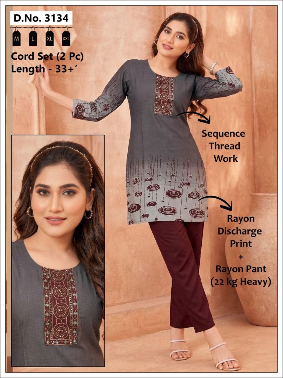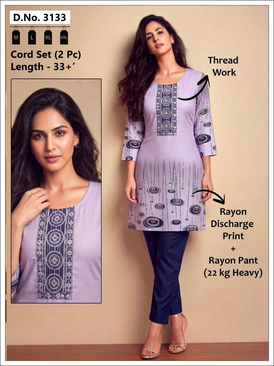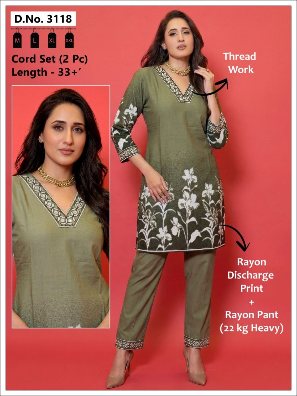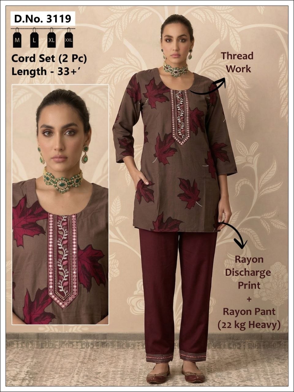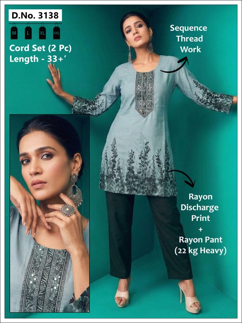 | Set Includes | Long Kurta, Straight-Fit Trousers, and Scalloped Dupatta |