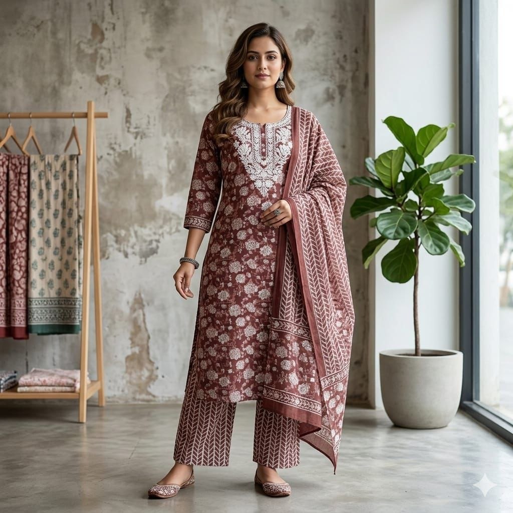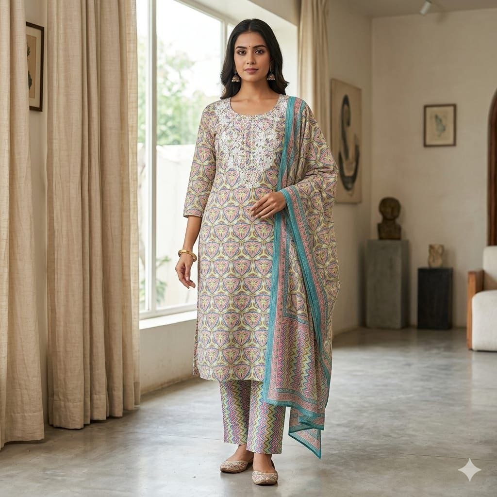 The set features a straight-cut tunic tailored from premium, high-density velvet that offers a rich, shifting luster. The focal point is the exquisite V-neckline, adorned with intricate metallic zari embroidery that frames the collarbones beautifully. This is complemented by a sophisticated gathered-bust detail, which adds a soft, feminine dimension to the structured fabric. The sleeves and trouser hems are finished with matching embroidered borders, creating a cohesive, boutique-style finish. Paired with perfectly coordinated straight-fit trousers, this outfit provides an elongated, streamlined look. Available in deep, saturated jewel tones including Emerald Green, Royal Navy, Midnight Black, and Burgundy, this collection is a timeless investment in luxury ethnic wear.