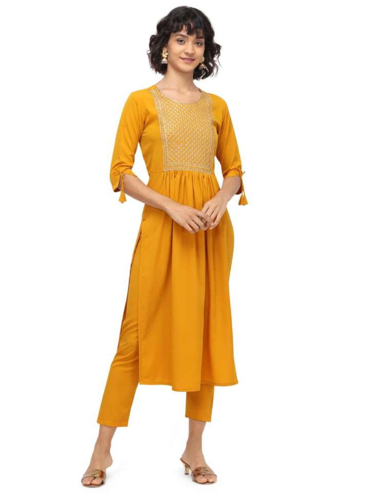 Exude timeless grace with this sophisticated Anarkali-style kurta set, available in rich maroon and radiant mustard hues. The ensemble features a flattering gathered waistline that creates a graceful flare, complemented by a meticulously embroidered rectangular yoke on the chest. A modern touch is added with three-quarter sleeves featuring stylish tie-up tassel details. Crafted from premium, breathable fabric, this set includes matching slim-fit trousers for a complete, polished look. Whether for festive celebrations, office wear, or social gatherings, this outfit offers a perfect balance of traditional craftsmanship and contemporary comfort.
