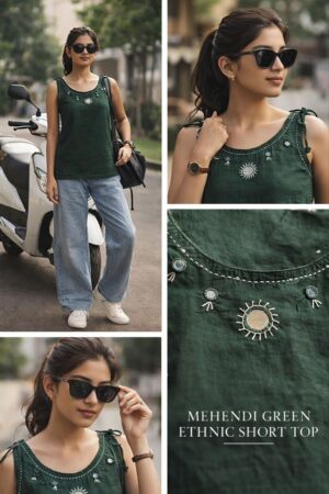 Complementing the kurta are perfectly matched tapered trousers. The pants are finished with coordinated embroidery at the ankles, creating a visual continuity that elongates the frame for a leaner, more polished profile. Whether you’re heading to a creative workspace, a daytime social gathering, or a semi-formal festive lunch, this set offers a uniquely refreshed look that feels as light as it looks.