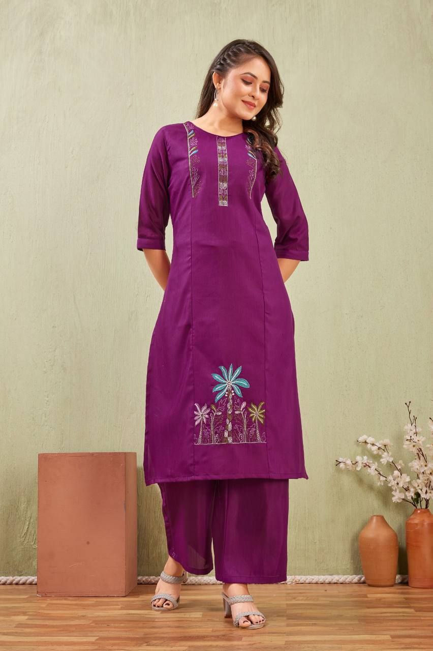 | Product Title | Swanari Fashion Embroidered Rayon Kurta and Palazzo Set with Tree Motif |